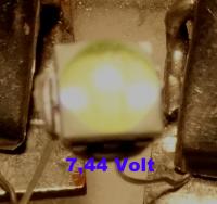 | Die Spannung über einer LED habe ich mit 7V gemessen. | Für einen einzelnen LED-Chip ist das viel zu viel.