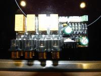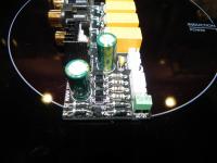 Sobald ich diese aber mit dem Phonoverstärker verbinde wird es ein ganzes stück lauter und noch lauter wenn ich sie auf einem leeren Kanal Schalte wo kein Plattenspieler angeschlossen ist. lege ich zusätzlich mit der Hand eine Kabelverbindung vom Massekabel Plattenspieler zu einem der Elkos (siehe Bild, sind 2 Stück verbaut) und drücke das oben drauf wird das Summen ein ganzes Stück leiser. (Masseproblem?) Ach ja und die 0V Leitung kann ich an dieser Platine ja auch nicht anschließen, hat ja nur diese 2 Adern Eingang.