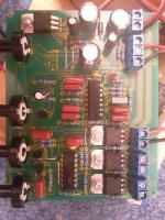 So wenn ich mir deine Versorgungsspannung anschaue dann stimmt die Spannung 8 V schon nicht ! Das deutet darauf hin , das du entweder die IC´s IC1 oder IC2 verpolt eingebaut hast oder schlicht und einfach der 7808 ne Macke hat. Die 8 V müssen am PIN4 nach pin 11 anliegen und wenn da nur 2,5 V anliegen ist da was oberfaul!