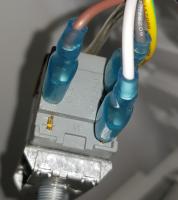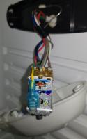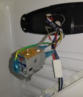 Der Thermostat ist im Warmzustand aktiv. Ich habe also den Klemmblock mit Starter Relais vom Compressor abgebaut. Die beiden Wicklunggen des Compressors scheinen OK zu sein. Es hat sich gezeigt, daß der Motor Protector defekt ist. Der Einsatz kann heraus geklipst werden.