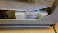 Im Spülraum findest Du auf der rechten Seite die Befestigungsmutter (das runde Plastikgitter), gegen den Uhrzeigersinn lösen. Wassertasche abnehmen (ggf. Schlauch und Stecker vom Ventil lösen). Deckel von der Elektronik runter (etwas kräftiger Richtung Front schieben) nun kannst Du das Gehäuse mit der Platine nach oben herausziehen (2 Rastnasen an der Seitenwand der Bodengruppe reindrücken).