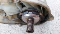-Der ausgebaute Motor dreht sich etwas schwergängig. Das obere Lager ist sehr leichtgängig. Leider komme ich zum unteren Lager nicht ran, weil an der Motorwelle ein Metallrad sitzt, welches den Keilriemen antreibt und ich dieses Rad nicht von der Welle abbekomme.