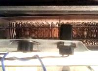 Das Netzfilter ist genau dort, wo die Zuleitung im Grerätegehäuse (rechts,oben) verschwindet und endet. |