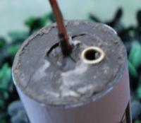 Beide Seiten der Hülse verschließe ich mit Kunststoffkappen (oder eher Pertinax), in die ich auf einer Seite ein kleines Loch bohre., dann wird mit Prestolit verklebt(vergossen).