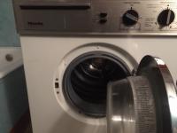 die (mit der Wohnung gemietete) Waschmaschine aus den 1980ern, eine Miele W 934, öffnet die Tür nicht mehr.