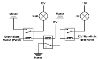 Das rote Licht soll leuchte, wenn mind. das Standlicht an ist. Dazu kann ich eine Leitung nutzen, die 12V führt wenn das Standlicht an ist und 0V wenn Standlicht aus ist.