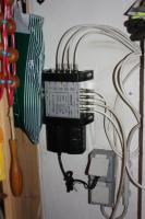 Die Kiste ist ein Multischalter, für diese Anlage eigentlich überflüssig und überdimensioniert, da für 8 Teilnehmer und 2 Satellitenpositionen.