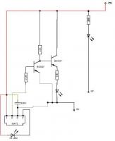 Daher würde ich wohl doch wieder mit den Transistoren arbeiten. Aber nun vorläufig die Anzeige LED und den Vorwiderstand an Emitter des 2 (rechten) Transistors anschließen. Oder ist da etwas gegen einzuwenden? Im Test auf dem Steckbrett hat es funktioniert. Ich meine so wie in der Zeichnung angegeben.