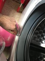 dieser kleine Riss hat wohl zu Wasseraustritt geführt. Jedenfalls hat mich meine besser Hälfte lautstark beschimpft, dass ich das kaputt gemacht habe, als sie von einem Kurztripp wieder kam und ihre Wäsche wusch