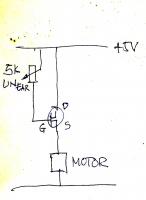 Der Poti ist ein 5K (linear) und auf wenige Ohm eingestellt. Den IRF3708 hab ich auf eine Kühlplatte befestigt. Auf dem Schaltild hab ich noch vergessen einen (Pulldown?) Widerstand zu zeichnen. den hab ich mit 100k vom Gate auf Erdung gelegt. Hoffentlich stimmt das einigermassen  Auf jeden Fall scheint es zu funktionieren.