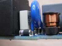 Außerdem zu dem grauen Kondensator mit 275 VAC und zu dem Transistor/ rechter Kontakt (+/- unbekannt). Bezeichnung: P6NK60ZFP