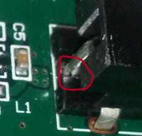| | der Mittelpin des DC-Einbausteckers direkt am Übergang zur Leiterplatte gebrochen |