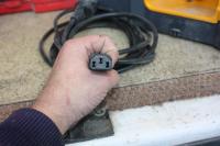 Lass die gelbe Strippe heil und kauf Dir eine vorkonfektionierte Kaltgeräte-Anschlussleitung für vielleicht 3 bis 10 Euro. Das ist ein Massenprodukt.