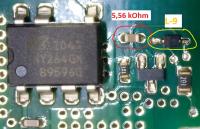Widerstand und IC Wandler sind bereitliegend. Die Teile wollte ich beim Eletroniker einlöten lassen. Dieser weigerte sich, da er meinte, dass auch "Dioden" in der Umgebung kaputt sind. Und so lange ich die Typenbezeichnung der Kleinstteile nicht habe, wird er mir das nicht reparieren.