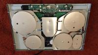 Die Sensoren für den Hauptschalter und die Steuerung der Kochfelder durch die Magnetscheiben befinden sich in von unten ausgefrästen Vertiefungen in der dicken Metallleiste vorn.