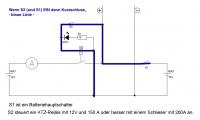 Es besteht auch die Möglichkeit beide Batterien durch Diodenumschalter unzuschalten . Und genau das sollte man nicht machen mit der Leuchtdiode hat das rein gar nichts zu tun. Deine Reservebatterie ist und soll was sie ist eine Notfallbatterie sein. Und wenn dein Generator läuft kann er auch beide Batterien gleichzeitig laden! Nein Bau das so auf wie von mir gezeichnet und S1 wäre dann dein Masterswitsch (der Trennt den Hauptakku vom Schiffsnetz).