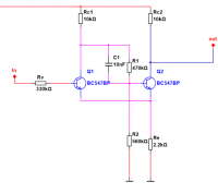 | | dann siehst du sofort, dass der Arbeitswiderstand des K1 höchstens Rc1 || (R1+R2) beträgt. | Ja stimmt, logisch. War gestern wohl etwas müde^^.