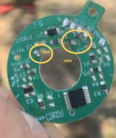 Von der Spule gehen zwei extrem kurze Düne Drähte nach oben ( ich denke diese müssen an die Platine)