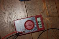 Stromzängelchen zeigt 0,002 Kiloohm an, Multimeter 3,3 Ohm