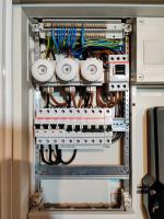 - Mit 10 mm² Verbindungsbrücken vor den Schmelzsicherungen sind außerdem vier B16 Automaten angeschlossen, welche mit 1,5 mm² zu den Verbrauchern im Keller weitergeführt werden (Keller 1, Keller 2, Waschmaschine, Heizung)