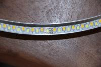 Fehler gefunden. Beide Led-Strips in der Lampe haben unterbrochene Kontakte. Habe sie nachgelötet und alles funktioniert. Schön blöd von mir ist dass ich den Abfall des STROMS (nicht Stromstärke!!!!), genau gesagt die Spannung falsch gedeutet habe.