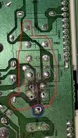 Eventuell gab es einen Überschlag zum Kühlkörper. Auf diese Idee komme ich, wenn ich diese verdampfte, dünne Leiterbahn sehe.