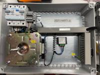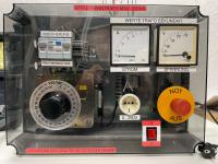 Dabei handelt es sich um eine Frontplatte mit Volt- und Amperemeter, einem RCD mit 3 LS-Schaltern, diversen Feinsicherungen und vor allem einem Stelltrafo.