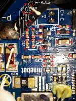 Du meintest ja wenn ich es richtig verstanden habe, dass die Kondensatoren nicht unbedingt zusammenhängen und damit hast du vollkommen recht. Im letzten Bild oben sieht man das eine Bahn zwischen den Sicherungen und dem letzten Kondensator C36 nach oben läuft zu einem (in meinen Augen fraglich positionierten) Widerstand R17. Er ist ganz oben neben dem weißen Silikon. Unten hat er 60V und am Ausgang der zu den Sicherungen führt 30 V. Er piepst nicht und ich bekomme nur ein O.L bei normaler Widerstandsmessung.