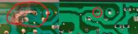 Habe nun auch vom Türschlosskabel bis zur Platine gemessen. Der mittlere Pin (roter Kreis) von der Buchse hat auf der Platine keinen Durchgang. Kann man gut im Bildvergleich erkennen. Links meine Platine. Rechts ein Bild aus dem Internet von der Original Platine.