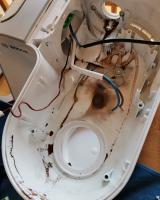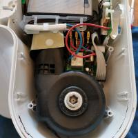 Darauf hin habe ich das Gerät geöffnet und es wurde ersichtlich, dass eine Flüssigkeit über den Motor bzw die Elektronik gelaufen sein muss und es auch sehr heiß geworden sein muss wie man auf dem Bild sieht an der schwarzen Stelle.