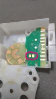Könnt ihr mir einen Tipp geben, um welche Art von Bauteil es sich handelt? Sollte es Durchgang aufweisen? Es verbindet die beiden eingekreisten Kontakte der Platine.