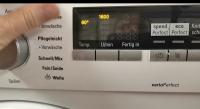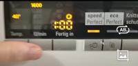 Stelle WaMa an (1. Bild). Sofort kommt auch die Zeit dazu und darüber dieser Kreis (2. Bild). Den ich leider in keiner Bedienungsanleitung finden kann, aber ein Nachbar meinte, das meint die Tür. Diese ist aber bei allen Fotos fest zu.