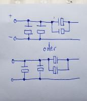 Oder andersrum, den ersten Elko 2x parallel, den zweiten auch, und die beiden in Reihe.