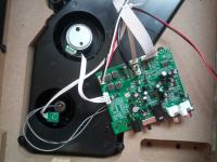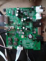 Auf der Rückseite der Platine befinden sich noch 2 Cinchbuchsen (AUX out), ein Klinkenstecker (AUX in), ein Umschalter für die Cinchbuchsen zwischen Phono und Line out, sowie der Netzteilanschluss (in der Steckermitte befindet sich der Plus-Pol).