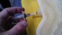 Zu 2) Das  EGS-Ventil (s. Foto mit gelbem Hintergrund) musste lediglich am Sitz gereinigt und neu eingedichtet werden. Dies klappte mit Vaseline erstaunlich gut - auch mit dem alten O-Ring.