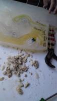 Zu 1),  Salzgefäß: Hier lag die Ursache des Problems "Salzmangel", genauer beim Regenerierventil (s. Foto). Dort hatte sich so viel weißer "Kalk-Schmodder" (Konsistenz wie eine sehr verbreitete, feste, weiße Handcreme in einer blauen Dose    , aber wie mit einem feinen Pulver versetzt) abgelagert, dass der nur ca. 3.5 mm große Durchlass verstopft war und keine Sole mehr von innen nach außen fließen konnte. Dieser Schmodder wurde durch das Öffenen und Schließen des Ventils (das Schalten ist gut hörbar) offenbar immer weiter verdichtet/verpresst. Diese Stelle werde ich im Auge behalten: Unklar ist mir geblieben, wie sich dieser Kalkschmodder hier bilden könnte/konnte, oder durch die Regenerierungseinheit hindurchgespült wurde. Aktuell fällt mir nur ein, dass der Voreigentümer zeitweilig auf grobes Salz verzichtet haben könnte. Durch die bereits im Vorfeld behobene Totalverstopfung (Kalk, s. Fotos) im Misch-/Zulaufkasten (re. Seitenteil) kann sich Wasser auf "Abwegen" seinen Weg in die Regeneriereinheit (und natürlich auch den Spülraum der Maschine) gesucht haben - und dabei Kalk mitgenommen haben.