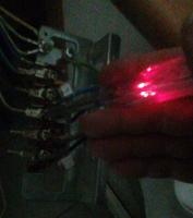 Da der Phasenpfrüfer sehr schwach ist, habe ich mehrere Bilder mit ausgeschltetem Licht geschossen, damit das Ergebnis sichtbar ist. Wie es an eingestellten Bildern zu erkennen ist, leuchtet jeden einzelne Phase: