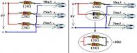 | Aber leider wird es so wie ich das vorgeschlagen hatte nicht gehen, da die andere LED-Sorte doppelt soviel Strom braucht wie die eine!