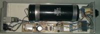 Rechts unter dem Schalter die PFC Drossel, daneben der 24V Trafo für die Elektronik. Das Relais links ist direkt mit den 24V und dem großen 35V Elko verbunden. Wenn dieser leer ist (ca. 10s) dann fällt das Relais ab und trennt den Elko vom Rest der Schaltung. Gleichzeitig wird der Elko über den den Widerstand (neben dem Relais) entladen.