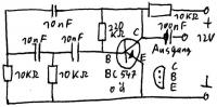 hab den 10k widerstand am kollektor (das ist doch der links oben in der schaltung?) jetzt durch einen 10k drehpoti ersetzt.