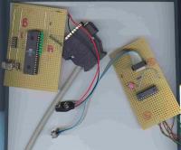 rechts der Programmieradapter zum anschluß an die parallele-schnittstelle... 10pol. stecker zum verbinden mit der testplatine.