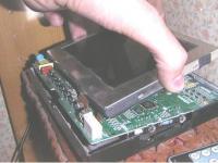 Ihr seht ihn ja auf dem Bild dass ich upgeloadet habe. Nur hier ist schon das Vorderverdeck abgenommen. Man erkennt dass der Display selber durch diese 2 Flachbandkabel mit dem Rest der Fernsehers verbunden ist.