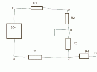 Habe mal die Potenziale ausgerechnet und komme auf F=20V A=15V B=10V C=7,5V E=0V