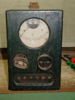 Das erste ist ein Trafo, mit einem Voltmeter und 3 Buchsen-Paaren, um die damals übliche Spannung von "igendwas um die 110V" auf cirka 110 Volt zu bringen.