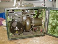 Das erste ist ein Trafo, mit einem Voltmeter und 3 Buchsen-Paaren, um die damals übliche Spannung von "igendwas um die 110V" auf cirka 110 Volt zu bringen.