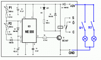 Das schwierige daran ist, daß bei Auslösen des Timers erst der Verbraucher 1 geschaltet werden soll (über S1) und nach ca. 2 Sekunden dann Verbraucher 2.