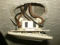 Am Lichtschalter darüber sind zwei Schwarze(links) uns ein weisses(rechts) Kabel angeschlossen.