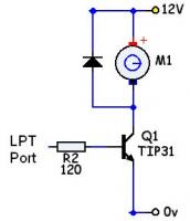 Dann schließe ich die Diode vor und hinter den Motor, den entsprechenden Pin des LPT vor den Widerstand.