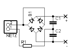 Um eine ausreichende Stromfestigkeit zu bekommen, habe ich einen Brückengleichrichter statt 2 Dioden genommen.