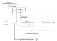 ich habe heute den ganzen Tag an einer schaltung gesessen, die die Fensterheber meines autos beim verriegeln automatisch hochfährt. Sie besteht aus einem zeitrelais und zwei umschaltrelais. Jetzt zu meinem problem: Wenn ich das Zeitrelais alleine anschließe (hab ich gemacht um es zu testen) funktioniert alles so wie es soll. Das Relais zieht die eingestellte Zeit (4 sec) an und fällt dann wieder ab. Wenn ich jetzt allerdings die beiden Umschaltrelais an das Zeitrelais anschließe (Umschaltrelais werden von dem Zeitrelais gesteuert), zieht das Zeitrelais an, fällt aber nach der eingestellten Zeit nicht wieder ab.